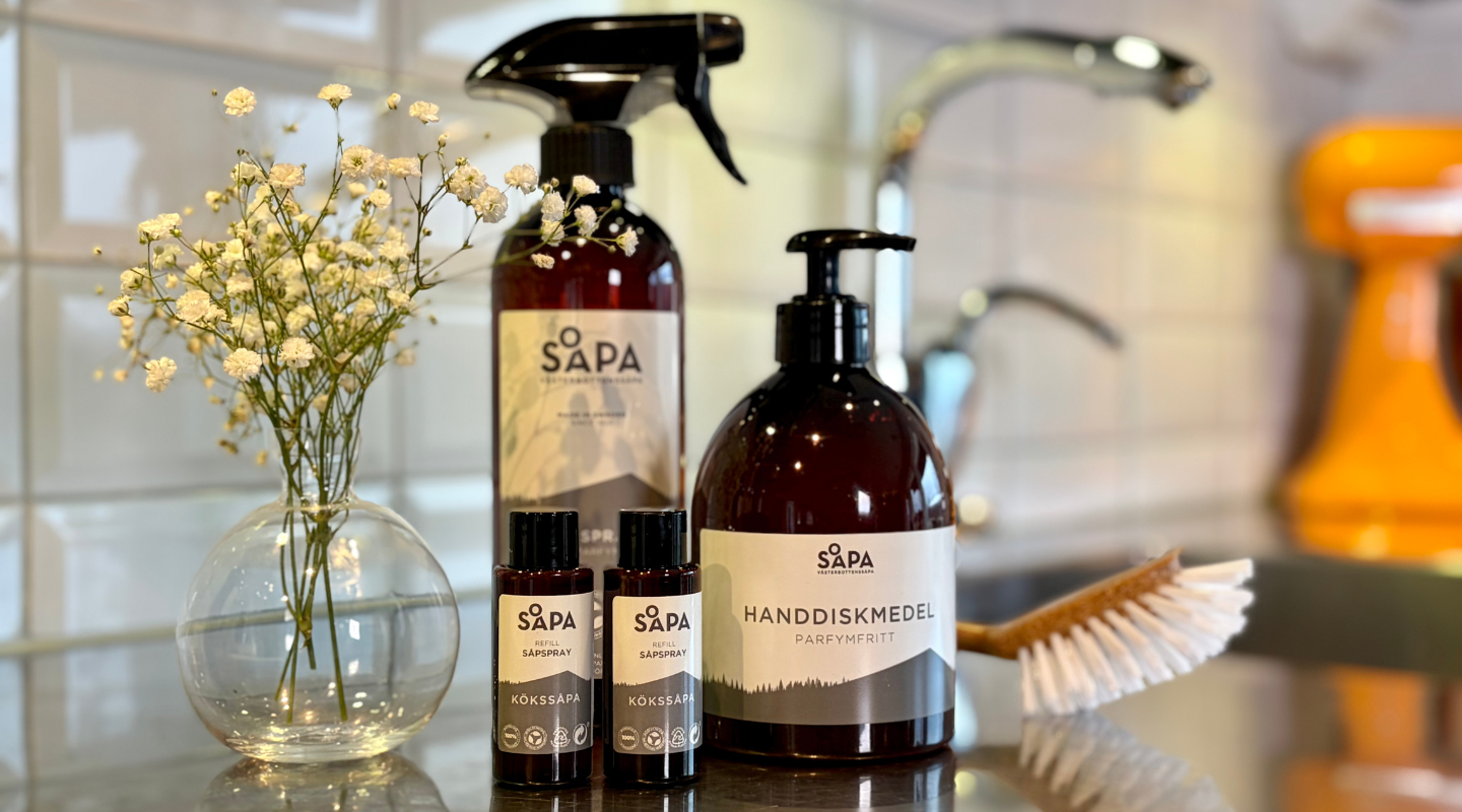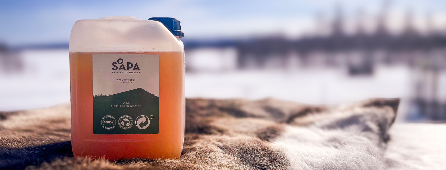 Tre generationer senare lever hennes filosofi kvar. I dag driver jag, Sara, Västerbottenssåpa med samma syn på återbruk och varsam hantering av resurser. Vi tillverkar vår såpa av återanvänd rapsolja från restauranger, som vi renar och förtvålar till såpa. Grundreceptet, ja det är såklart också gammelfarmor Fredrikas.