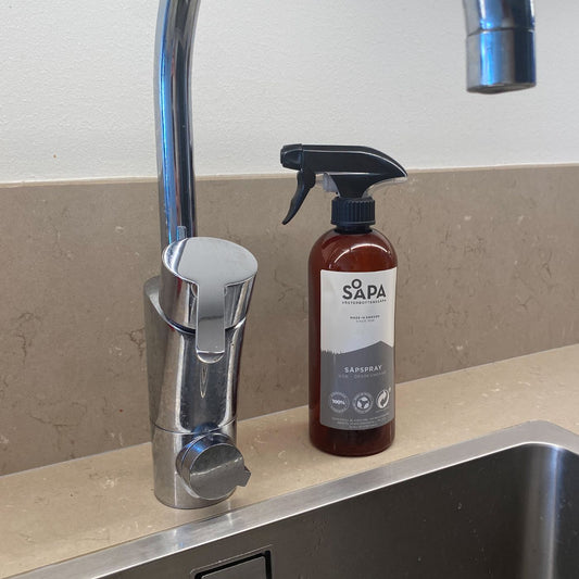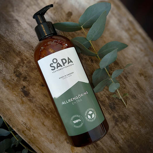 Överfettad såpa, till exempel Västerbottenssåpa som är gjord på raps eller majsolja, rengör effektivt men är samtidigt skonsam. Den kan användas både till grovrengöring och till att vårda ytor som trä och sten, eftersom den inte torkar ut utan hjälper till att bevara materialets naturliga egenskaper.
