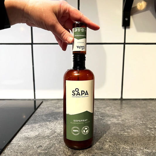 Såpa är en typ av rengöringsmedel som traditionellt är tillverkat av naturliga fetter eller oljor och lut. Den är känd för sin förmåga att effektivt bryta ner smuts och fett på olika ytor. Ursprungligen gjordes såpa av animaliska fetter, men idag används oftast vegetabiliska oljor. Såpa är biologiskt nedbrytbar och anses vara ett miljövänligt alternativ till många syntetiska rengöringsmedel. Det finns flera typer av såpa, inklusive grön, gul, linoljesåpa och brunsåpa, som skiljer sig åt i färg och vissa egenskaper beroende på de specifika ingredienserna som används i deras tillverkning. Såpan Västerbottenssåpa säljer är en gulsåpa som tillverkas av återvunnen frityrolja från restauranger och livsmedelsproducenter. Det gör såpan till ett cirkulärt och mer hållbart alternativ.