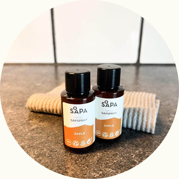- 1 st allrengöringssåpa på pump, 0,5 L med doft av äpple.