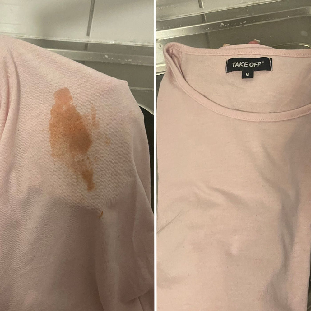 Så här gjorde jag för att rädda min kompis täckbyxor som fått både sot och varmt stekfett på sig från en stekhäll.   Varmt fett tränger nämligen betydligt djupare in...