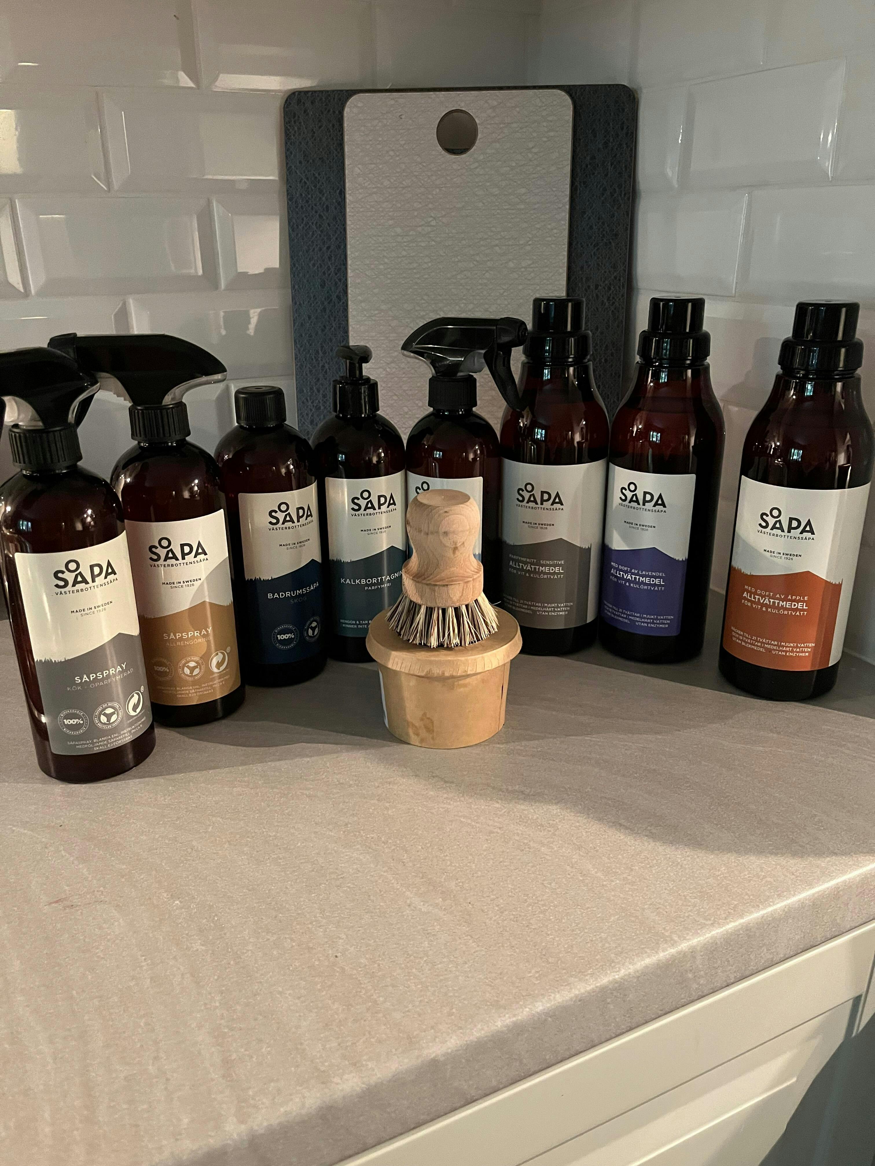 Västerbottenssåpas alltvättmedel använder en ny teknologi utan blekmedel, enzym och SLES (Sodium laurate ethoxylated sulfates). Det här innebär att vi använder mindre mängd ämnen utan att minska effekten. Det är bra för miljön, klimatet och dig!