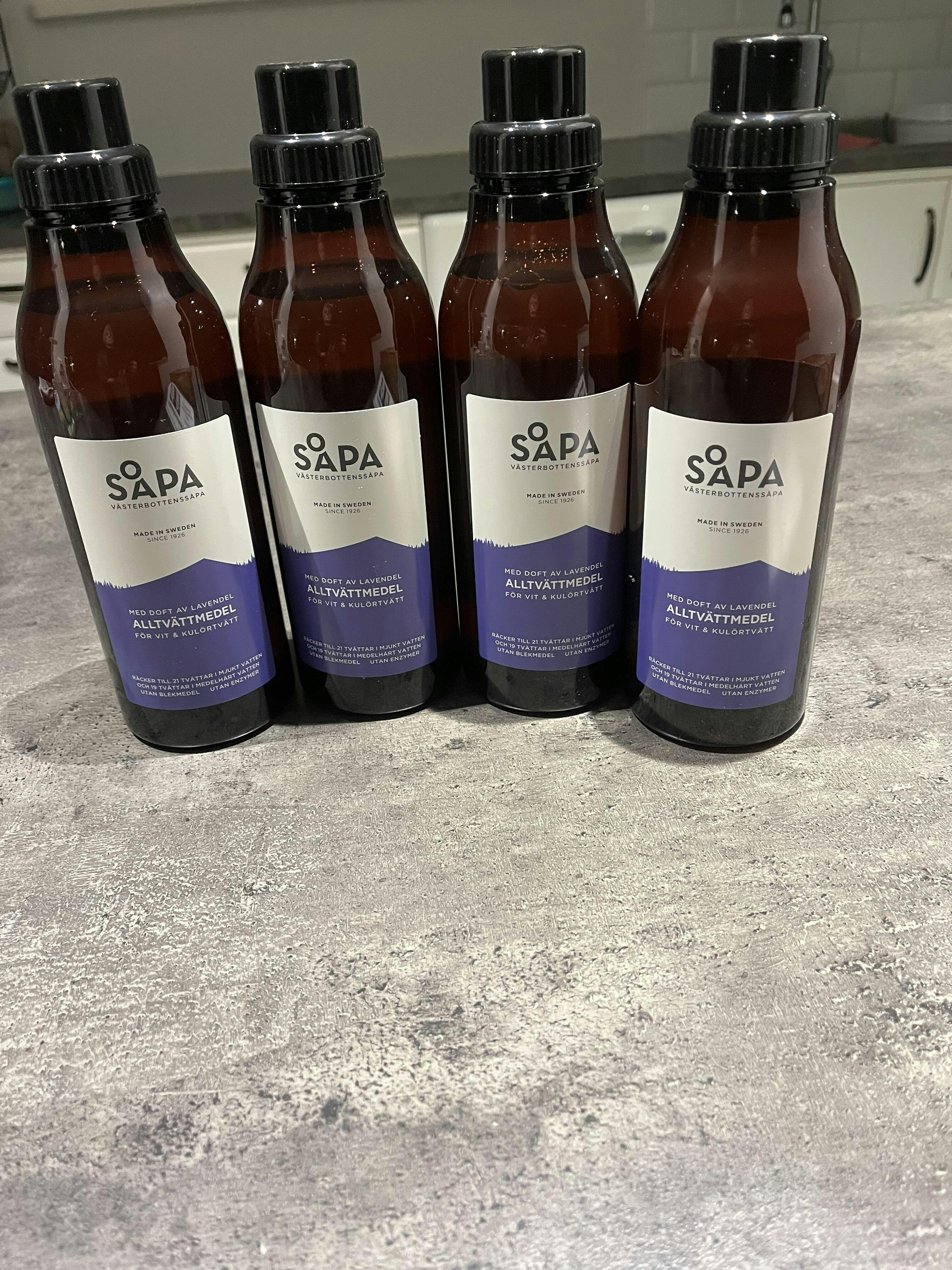 Detta paket räcker upp till 42 tvättar och priset per tvätt är 4 kr. En flaska innehåller 750 ml.