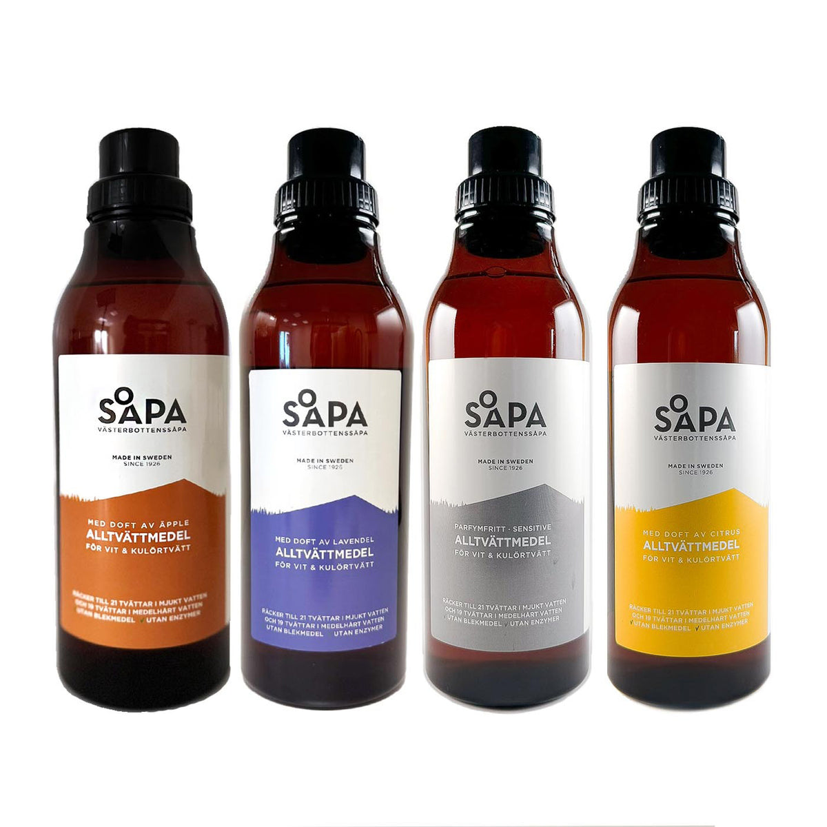 4-pack – Alltvättmedel – Tvättmedel för vit och kulörtvätt, 750 ml per flaska – Fyra dofter att upptäcka