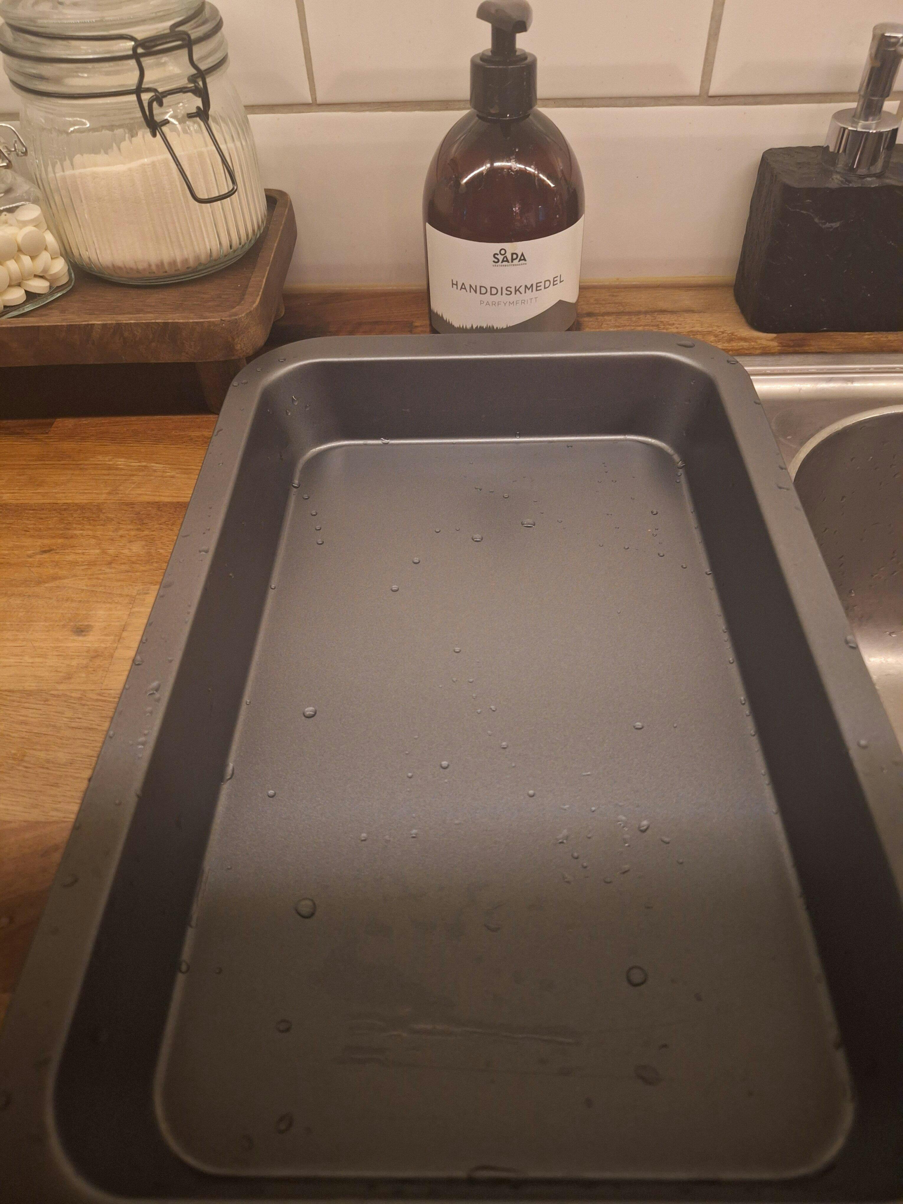 För riktigt ingrott fett eller brända ytor rekommenderar vi vår kökssåpa som är extra effektiv mot hårt sittande smuts.