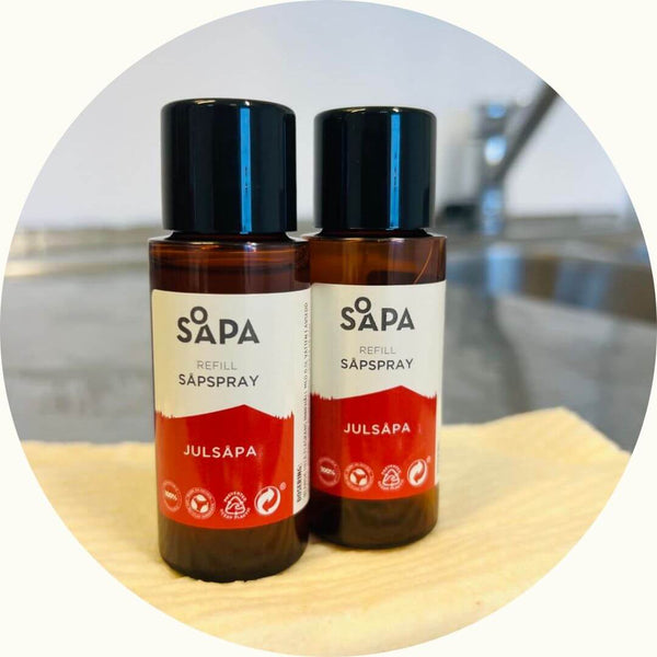 Med varje köpt såpspray får du två refiller. Om du till exempel köper en såpspray för badrum får du två refiller för badrummet. Du kan också köpa ytterligare refiller vid behov.