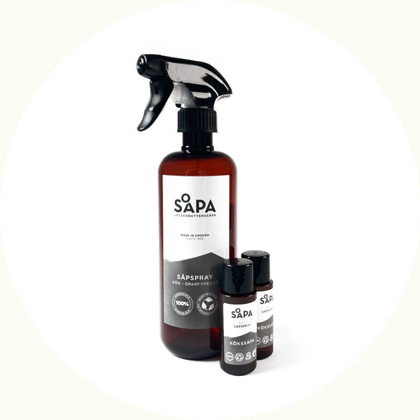 Det finns refill till såpspray för badrum, allrengöring och kök. I kategorin “Refill till Såpspray” hittar du olika paket.