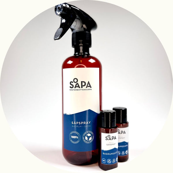 Med varje köpt såpspray får du två refiller. Om du till exempel köper en såpspray för badrum får du två refiller för badrummet. Du kan också köpa ytterligare refiller vid behov.